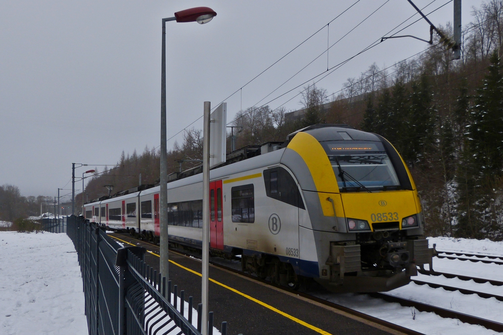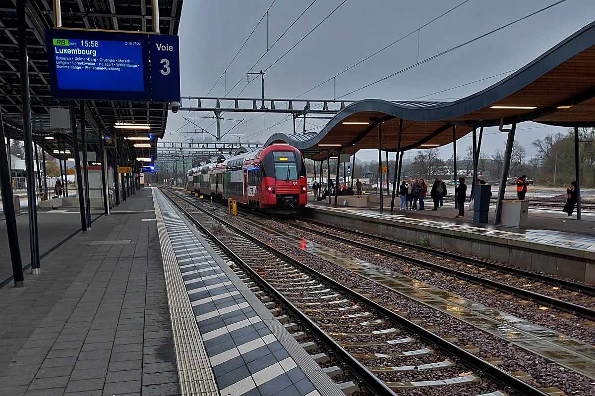 Zum Bild: Der Triebzug Z 2018 erreicht am 30.12.2017 als RB 3538 Diekirch - Luxembourg die neue Haltestelle Pfaffenthal-Kirchberg. (Hans)