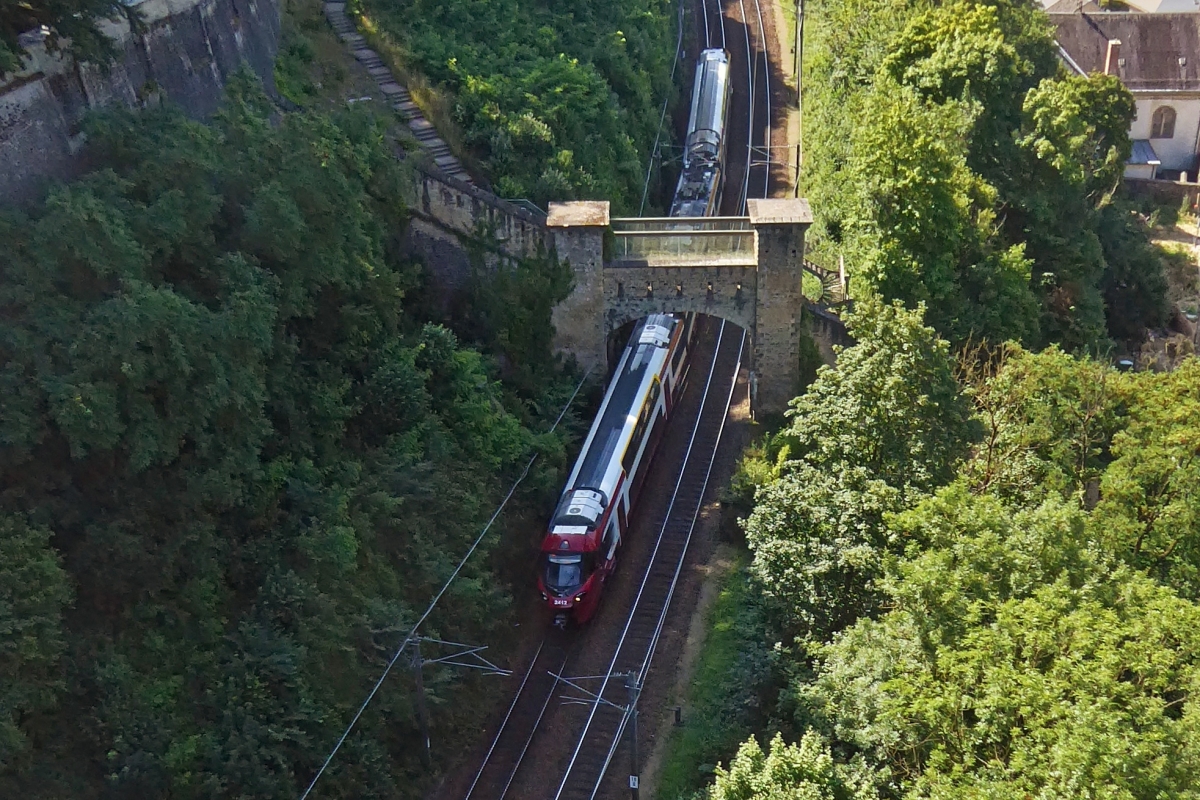 CFL 2216, hat vor kurzem den Bahnhof von Mersch verlassen, fährt hier an unserer Fotostelle an uns vorbei, er bedient als RB die Strecke Diekirch Luxemburg. 02.2023