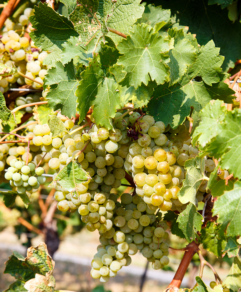 Hier am 28.08.2018 weiße Trauben bei Leutesdorf (Rhein).